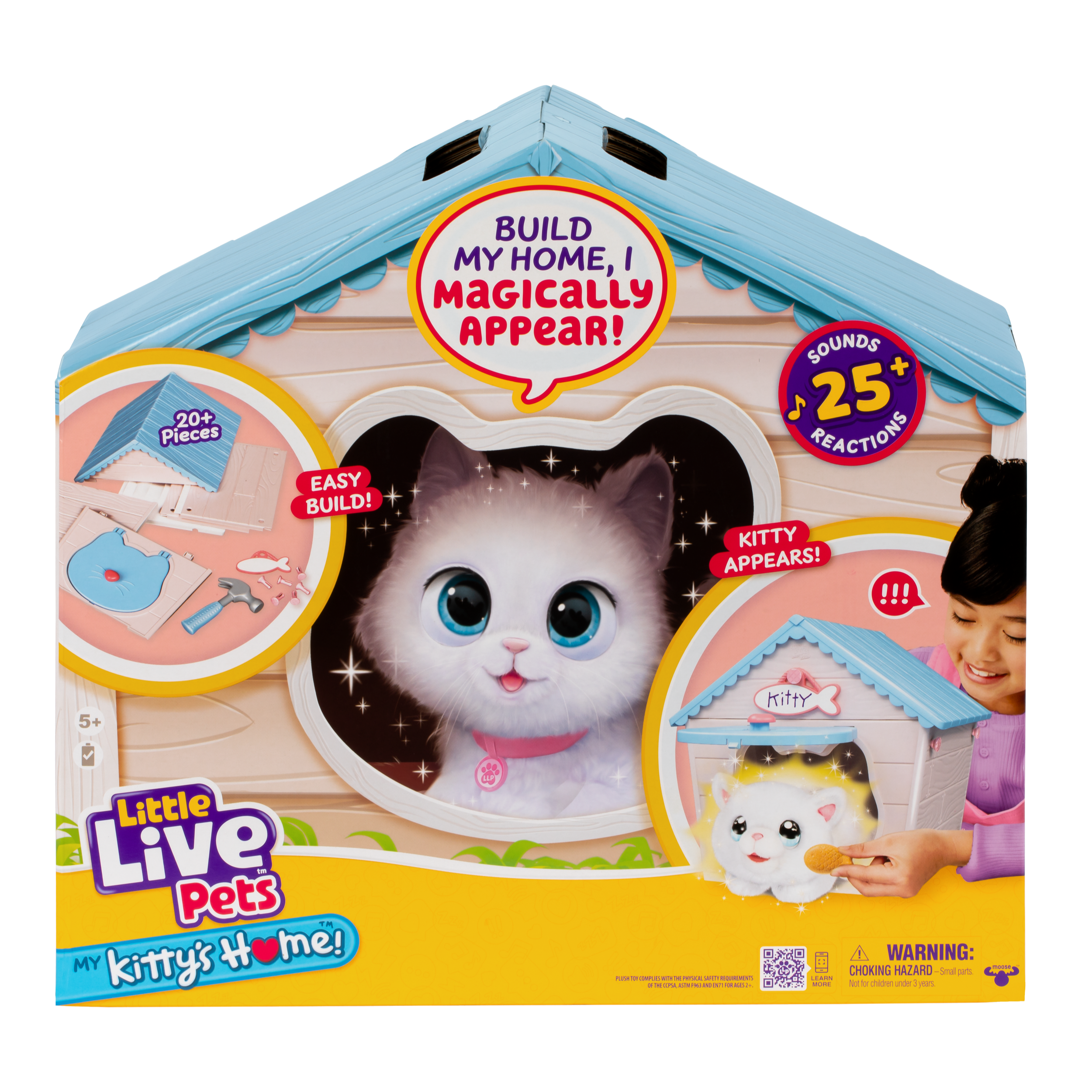 Product: Premium playset with an unexpected play pattern: pieces assemble to create structure that then reveal a new element (Plush Kitten) by “appearing” from within. High price positioning demands price perception and clear, immediate communication of the surprise play loop: Build → Trigger → Appear.